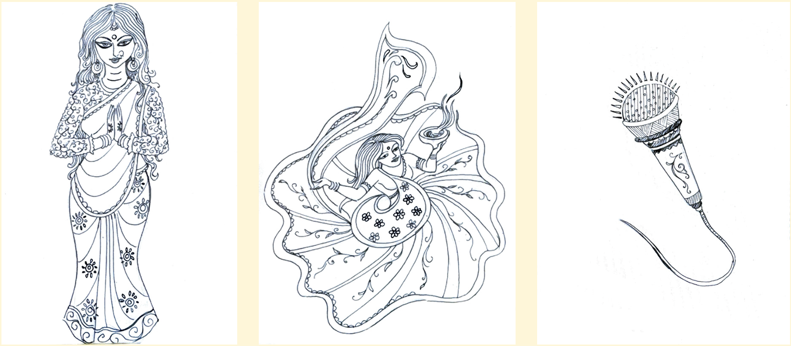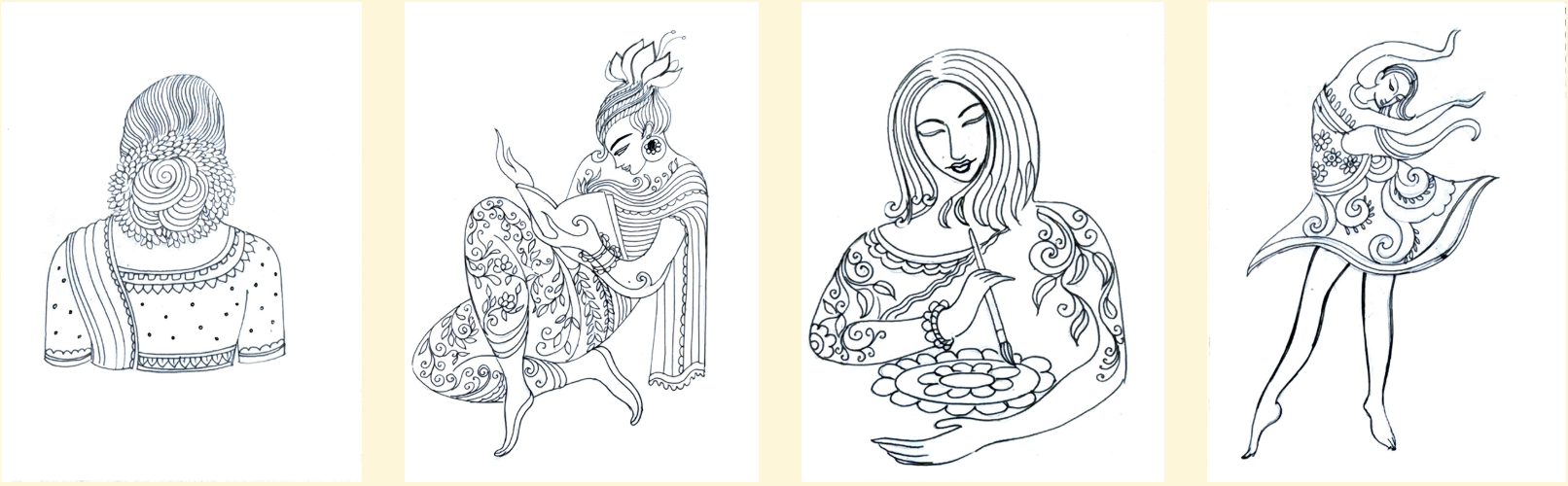I started off by creating sketches when developing the topic., making sure to concentrate on using the conventional technique to produce each of the intricately detailed images that collectively represent my culture. I attempted to mimic a distinctive Indian folk-art style in the society called "Alpona" style.